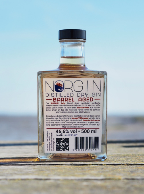 46% vol. at filling and a comparatively short aging time preserve the intense character of our NORGIN with the salty Queller, which convinces with 44% vol. after storage. Thus, it is ultimately the highest refinement of our original, which makes you want to go to sea.